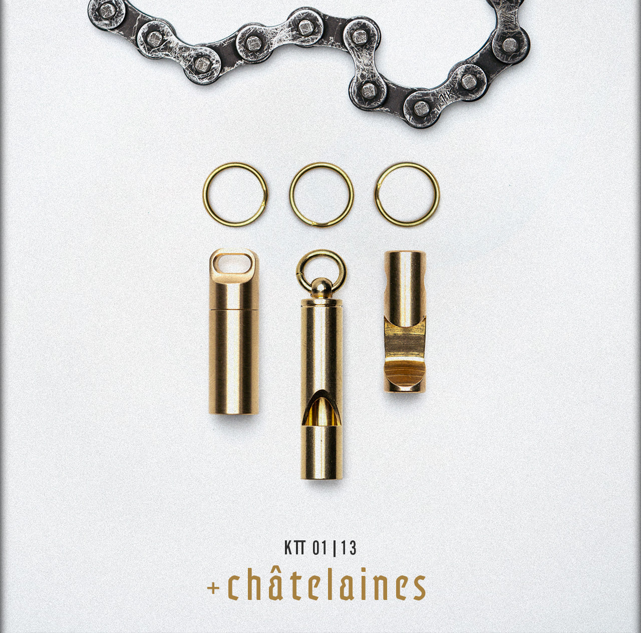 Es gibt die Schlüsselkette KTT© und die KTT© +chatelaines Variante, welche zusätzlich Pfeife, Dose und Flaschenöffner beinhaltet.